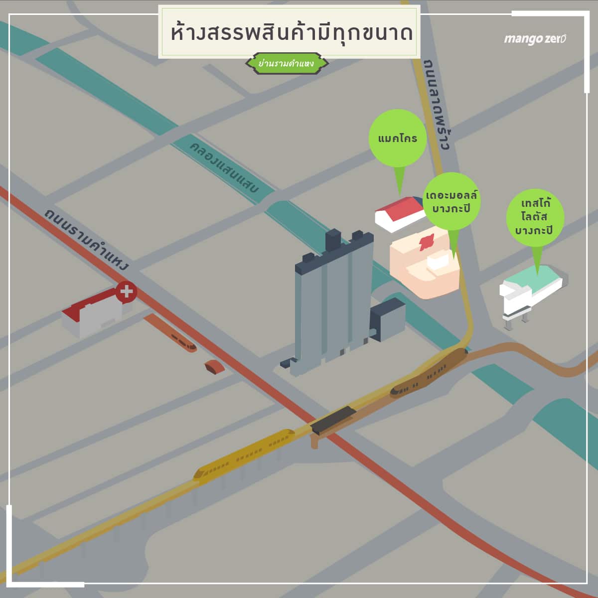 ถ้าพูดถึงย่านรามคำแหง อาจจะนึกถึงมหาวิทยาลัยรามคำแหงบ้าง เดอะมอลล์บางกะปิบ้าง ราชมังคลากีฬาสถานบ้าง แต่…จะบอกว่าไม่ได้มีเท่านี้ เพราะทีมงาน Mango Zero จะพาไปสำรวจย่านนี้กัน ที่สำคัญเดินทางง่ายมากขึ้นเพราะคมนาคมสะดวกและหลากหลาย พร้อมห้างสรรพสินค้าหลายขนาดให้ได้เลือกช้อปปิ้ง มีพื้นที่สำหรับพักผ่อนและความบันเทิง เรียกได้ว่าตอบโจทย์คนสมัยใหม่มาก กลายเป็นย่านที่เชื่อมทุกไลฟ์สไตล์เข้าด้วยกันจริงๆ ^^ ราชมังคลากีฬาสถาน มาถึงย่านรามคำแหงถ้าไม่พูดถึงราชมังคลากีฬาสถาน เรียกว่ามาไม่ถึงหรือหลายคนรู้จักกันว่าสนามกีฬาหัวหมาก ที่นี่ถือเป็นสนามกีฬาใหญ่ที่สุดในประเทศไทย นอกจากจะแข่งกีฬาแล้วยังเปิดให้จัดงานคอนเสิร์ตกลางแจ้งอีกด้วย ส่วนใครไม่ถนัดสายคอนเสิร์ตที่นี่ยังเปิดพื้นที่ให้ประชาชนทั่วไปเข้ามาออกกำลังอีกด้วย รถไฟฟ้า / เรือ / รถ ใครๆ มักจะพูดว่ามาย่านรามคำแหงทีไรมักเจอปัญหารถติด ขอให้สลัดความคิดเหล่านั้นไปค่ะ เพราะตอนนี้เส้นทางคมนาคมที่ย่านนี้มีครบทุกอย่างซึ่งตอบโจทย์ทุกการเดินทางจริง ไร้กังวลได้เลย รถไฟฟ้า : จะมีรถไฟฟ้าสายสีเหลือง ช่วงลาดพร้าว–สำโรง (ปี 2564) ไปตามแนวถนนลาดพร้าวจนถึงทางแยกบางกะปิ จากนั้นแนวเส้นทางจะไปทางทิศใต้ตามถนนศรีนครินทร์ เส้นทางนี้สามารถเชื่อมต่อกับโครงการรถไฟฟ้าสายสีส้มที่สถานีลำสาลี รวมทั้งเชื่อมต่อกับสถานีหัวหมากของรถไฟฟ้าไปยังท่าอากาศยานสุวรรณภูมิ (Airport Rail Link) ตามแนวถนนศรีนครินทร์ได้ด้วย เรือ : ย่านนี้อยู่ติดกับคลองแสนแสบซึ่งมีท่าเรือขนส่งอีกเช่นกันสำหรับคนที่อยากหลีกเลี่ยงจราจรติดขัดทางเลือกนี้ถือว่าน่าสนใจ รถ : สำหรับคนที่มีรถยนต์ส่วนบุคคลสามารถใช้เส้นทางจราจรของย่านรามคำแหงเดินทางไปยังที่อื่นๆ ได้หลายทาง เช่น สนามบินสุวรรณภูมิ มอเตอร์เวย์ออกสู่จังหวัดภาคเหนือ ภาคตะวันออก หรือเข้าสู่พื้นที่ชั้นในกรุงเทพมหานครก็ได้ไม่ยาก มหาวิทยาลัย / โรงเรียน ถ้าให้นึกถึงสถาบันการศึกษาในย่านรามคำแหงกับ มหาวิทยาลัยรามคำแหงคงเป็นอันดับแรก แต่ย่านนี้ยังมีถาบันการศึกษาที่ครอบคลุมทุกระดับอีกด้วย รวมทั้งเดินทางสะดวก เช่น มหาวิทยาลัยอัสสัมชัญ ,โรงเรียนบางกะปิ ซึ่งตอบโจทย์ทุกด้านของครอบครัวที่มีบุตรหลาน สถานบันการแพทย์ ใครจะไปคิดว่าย่านรามคำแหงนั้นจะเป็นศูนย์รวมสถานพยาบาลที่มีชื่อเสียง พร้อมเครื่องมือแพทย์ครบครัน และยังทันสมัย ทำให้คนในพื้นที่อุ่นใจยามเจ็บไข้ได้ป่วย เช่น โรงพยาบาลสมิติเวช ศีนครินทร์ , โรงพยาบาลรามคำแหง , โรงพยาบาลเวชธานี ห้างสรรพสิน