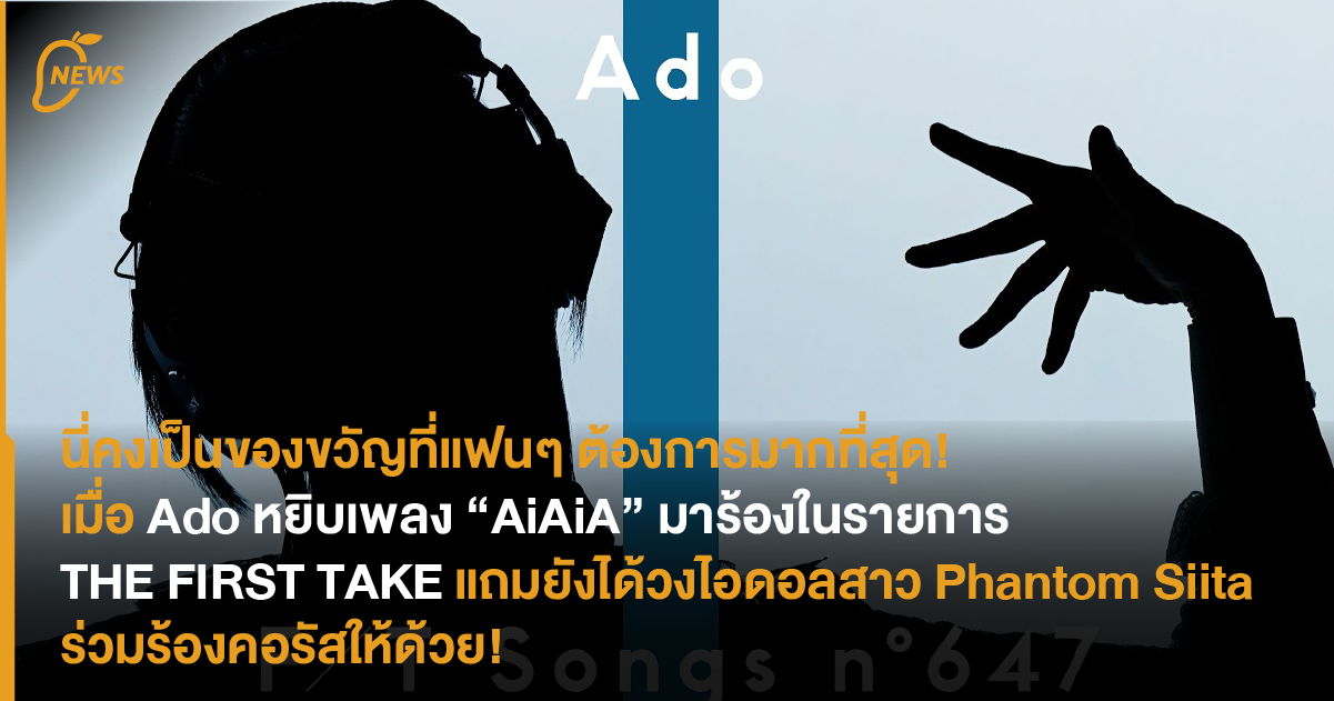 นี่คงเป็นของขวัญที่แฟนๆ ต้องการมากที่สุด! เมื่อ Ado หยิบเพลง “AiAiA” มาร้องในรายการ THE FIRST TAKE แถมยังได้วงไอดอลสาว Phantom Siita ร่วมร้องคอรัสให้ด้วย!