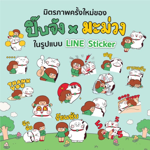 ‘ตั้ม–วิศุทธิ์ พรนิมิตร‘ คือศิลปินนักวาดการ์ตูนและวาดภาพประกอบ ที่เราเชื่อว่าวัยรุ่น (ตอนปลาย) ในยุคนี้หลายคนที่เติบโตมากับยุคเด็กแนวที่ไปดูคอนเสิร์ตงาน FAT, อ่านนิตยสาร a day, มีความฝันอยากทำนิตยสารทำมือต้องรู้จักเขา เพราะตั้มโด่งดังมาจากการ์ตูนแนวปรัชญา HeSheIt ที่ตีพิมพ์ในนิตยสาร a day และมีงานเขียนออกมามากมาย และหลังจากเขาวาด HeSheIt ไปหลายปี ในที่สุดเขาก็ถึงจุดที่อยากจะหาคาแรคเตอร์ใหม่ที่นำเสนอตัวตนของเขาในมุมอื่นบ้าง จนในที่สุดเขาก็ออกแบบคาแรคเตอร์ตัวหนึ่งออกมาในชื่อ ‘มะม่วง‘ หญิงสาวผมยาวตัวเล็กๆ ที่ดูแล้วน่ารัก ไม่มีพิษมีภัยอยู่กับใครก็ได้ และในที่สุดมะม่วงก็กลายเป็นคาแรคเตอร์ที่ป็อบมาก ถูกใจทั้งคนไทยและแฟนคลับของเขาในญี่ปุ่น แน่นอนว่าแบรนด์หลายแบรนด์อยากได้มะม่วงไปรวมแจมด้วย ล่าสุดแบรนด์ที่ชวนมะม่วงไปร่วมสนุกด้วยก็คือ ธนาคารกสิกรไทย หรือ KBank โดย KBank ได้ชวนตั้มมา Collaborate สนุกๆ ด้วยกัน โดยเอาคาแรคเตอร์ ‘มะม่วง‘ มาเล่นกับแมวอวบอ้วนทื่ชื่อ ‘ปิ๊บจัง‘ มาวาดเป็นสติกเกอร์ไลน์ “Peep-Chan x Mamuang” ตั้ม วิศุทธิ์ ได้พูดถึงการทำงานร่วมกันกับ แบรนด์ KBank แบบสนุกมีแอบเม้าท์ลูกค้าเบาๆ พอเฮฮา รวมถึงมีเบื้องหลังความน่ารักอื่นๆ ของการทำงานที่ไม่เคยเห็นที่ไหน กดคลิกดูคลิปนี้กัน! https://www.youtube.com/watch?v=ryYOxPZO0U4 ‘ปิ๊บจัง x มะม่วง‘ เจอกันด้วยความตั้งใจ ตั้ม–วิศุทธิ์ เล่าให้เราฟังว่า โปรเจกต์นี้เริ่มต้นอย่างเรียบง่ายมากนั่นคือทางธนาคารกสิกรไทยเสนอโปรเจกต์อยากให้เขาเอาคาแรคเตอร์มะม่วงมาร่วมสนุกกับปิ๊บจัง แมวสีขาวตัวอ้วนซึ่งเป็นรู้กันทั่วว่าถ้าเห็นแมวปิ๊บจังก็กดจ่ายเงินซื้อของหรือบริการต่างๆ ด้วย QR Code ได้เลย ซึ่งตั้มก็บอกว่าเขาชอบปิ๊บจังอยู่แล้ว แมวที่บ้านที่ชื่อ ‘ซูชิ’ ก็หน้าตาเหมือนปิ๊บจังเลยสนใจอยากจะมาร่วมงานด้วย เขาลงมือสเก็ตงานทันทีตั้งแต่ที่ได้รับโจทย์ลงบนกระดาษรับบรีฟงานของที่ KBank ให้มาเลย เพราะคล้ายกัน…จึงลงตัว หากเป็นศิลปินคนอื่นการนำคาแรคเตอร์ของตัวเองไปร่วมงานกับคาแรคเตอร์ของคนอื่นอาจจะดูเป็นเรื่องยากในการปรับให้เข้ากัน แต่สำหรับมะม่วงผู้ให้กำเนิดคาแรคเตอร์ตัวนี้บอกว่ามันเป็นเรื่องที่ง่ายมาก เนื่องจากมะม่วงเป็นคาแรคเตอร์ที่เขาเปิดกว้างมากๆ และสามารถร่วมกับอะไรก็ได้ อยู่กับใครก็ได้ และความที่ KBank รู้จักตัวการ์ตูนของตั้มอย่างดี เลยทำให้การทำงานร่วมกันง่ายขึ้นไปอีก อีกทั้งความที่ปิ๊บจังกับมะม่วงมีรูปแบบร่วมบางอย่างของคาแร็คเตอร์ที่คล้ายๆ กัน เช่นความกลมๆ นิ่มๆ เชฟของตัวการ์ตูนมีความคล้ายกัน ก
