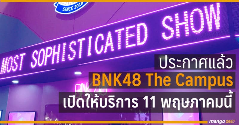 หลังจากที่รอมานานว่าเมื่อไหร่เธียร์เตอร์ของ BNK48 จะเปิดให้โอตะได้เข้าชมการแสดงของเมมเบอร์สักทีหลังจากที่ต้นปีก่อนโน้นจ็อบซัง ชิไฮนินของวงได้ประกาศในงานจับมือครั้งที่ 2 ว่าจะมีเธียร์เตอร์ของ BNK48 อย่างเป็นทางการ วันนี้มีการประกาศแล้วว่า BNK48 The Campus กำลังจะเปิดให้บริการในวันที่ 11 พฤษภาคมนี้ ซึ่งเป็นการเปิดให้บริการทุกโซนโดยโซนต่างภายในแคมปัสแบ่งออกไป เธียร์เตอร์ คาเฟ่ BNK48 Shop . นอกจากนี้ยังมีในส่วนของสถานที่ฝึกซ้อมของเมมเบอร์ ซึ่งอยู่ด้านในเธียร์เตอร์ และไม่ได้เปิดให้คนนอกเข้าไปชมการฝึกซ้อมของน้องๆ เนื่องจากเป็นพื้นที่ปิด สำหรับใครที่มีบัตรแคมปัส กำไว้แน่นๆ เลยอีกไม่กี่วันก็จะได้ชมการแสดงของเหล่าเมมเบอร์แล้ว
