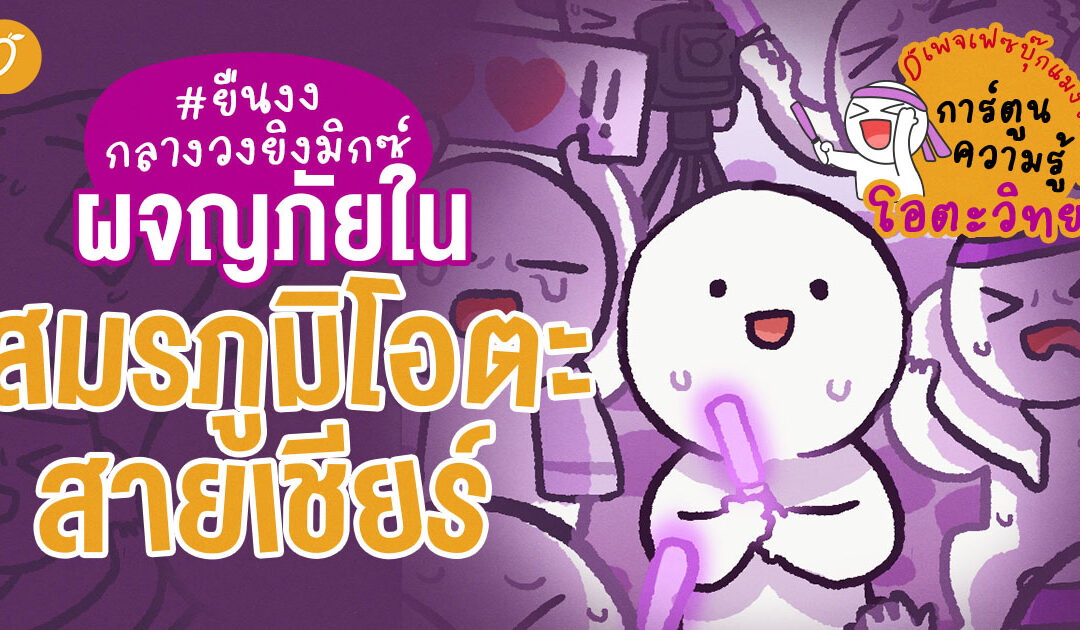 เอ้ย! เอ้ย! โอ่ยยยยยยยยย! ไทกะ ไฟยะ ไซบะ ไฟบะ ไดบะ ไบบะ จ้าจ้า! คุ้นหูกันบ้างไหมนะเสียงนี้ ใครต่อใครที่เดินเฉียดไปในงานไอดอลคงมีตกใจกันบ้างล่ะกับพลังเสียงโอตะดังกระหึ่ม หรือแม้แต่ท่าทางแปลกตาชวนงง จนต้องเกาหัวแกร่กๆ ว่า “แฮะๆ พี่ๆ เขาทำอะไรกันเหรอครับเนี่ย!?” MangoZero ขอเสนออ การ์ตูนโอตะวิทยาฉบับเฮฮามีสาระ ชวนมารู้จักวัฒนธรรมการเชียร์ไอดอลสไตล์ญี่ปุ่นกันแบบคร่าวๆ เล่าเกร็ดเล็กเกร็ดน้อย คำศัพท์หน้ารู้บริเวณเวทีไลฟ์ รวมถึงข้อควรระวังที่ควรจำให้ขึ้นใจเพื่อความสุขของทุกๆ คน ถ้าพร้อมแล้วก็คว้าแท่งไฟ จับผ้าเชียร์กันให้แน่น เราจะพุ่งตัวเข้าไปคลุกวงมิกซ์ บุกสมรภูมิกันโอตะสายเชียร์กันอย่างแล้ววว เลทโกววว!! รู้จักวิธีเชียร์ไอดอล : เสียงต้องมา ไฮเซย์โนะ!! เอ้ย! เอ้ย! มาเริ่มกันที่การใช้เสียงก่อน กระหึ่มดุดันไม่เกรงใจใคร ยังไงก็ต้องพากันนึกถึง “การยิงมิกซ์” เป็นอย่างแรก! “ยิงมิกซ์” เป็นการเชียร์รูปแบบหนึ่งในวัฒนธรรมการติดตามไอดอลญี่ปุ่นเทียบกับฝั่งเกาหลีก็คือแฟนชานท์นั่นเองกล่าวคือการยิงมิกซ์นั้นเป็นการส่งเสียงร้องเชียร์ตามจังหวะของเพลงอย่างพร้อมเพรียงเพื่อกระตุ้นให้เกิดความฮึกเหิมเพิ่มความคึกคักนิยมใช้ในเพลงเร็วจังหวะมันส์ๆ โดยส่วนมากก็จะมีแพทเทิร์นเบสิคที่ใช้อยู่หลักๆ 3 อย่างได้แก่ มิกซ์มาตรฐาน (The Standard Mix) ร้องว่า “ไทกะ ไฟยะ ไซบะ ไฟบะ ไดบะ ไบบะ จ้าจ้า!” มิกซ์ญี่ปุ่น (The Japanese Mix) “โทระ ฮิ จินโซว เซนิ อามะ ชินโดว คะเซน ( โทบิ โจวเคียว )” มิกซ์ไอนุ (Ainu Mix) ร้องว่า ชาเปะ อาเปะ คาระ คิระ รารา ทุสเกะ (ไวสุเปะ เคสิ สุสปะ) / (เมียวฮอนทุสเกะ) แต่ละเพลงก็จะมีรูปแบบการยิงมิกซ์ที่ไม่เหมือนกัน อาจมีการใส่ชื่อเมมเบอร์ (Name Calls) หรือร่ายบทกาจิโค่ยบอกรัก ทั้งยังมีการใช้เสียงร้องโอ่ยยย อู้ว เอ้ย หวูหวู! ในเพลงด้วย ก่อนจะไปงานของวงไหนๆ ก็สามารถศึกษาการมิกซ์ของวงนั้นๆ ไว้ก่อนเพื่อความพร้อม ความเป๊ะ ร่วมกับคนอื่นๆ รู้จักวิธีเชียร์ไอดอล : ท่าต้องมี ไขข้อข้องใจกระจ่างแจ้งเรื่องเสียงกันไปแล้วทีนี้มาดูฝั่งท่าทางกันบ้างมีตั้งแต่ระดับเบสิคเบาๆจนถึงระดับเหนื่อยหอบท่าออกกำลังกายสลายไขมันกันเลยทีเดียว เคฉะ (Kecak) คือการปรบมือ และยื่นมือ ผายมือไปที่เวที เพื่อเป็นการส่งพลังให้กับไอดอลผู้เป็นที่รัก ถ้ามีแท่งไฟติดไม้ติดมืออยู่ด้วย ก็จะชูแท่งไฟไปข้างหน้าตามจังหวะเพลง โดยมักจะทำในช่วง Chorus ช่วงสุดท้ายหรือในท่อนที่คล้ายๆกันจังหวะช้าลงกว่าปกติ โอชิจัมพ์ (Oshi Jump) ท่ามกลางฝูงชนมากมายอยากให้เธอรู้จังว่าเชียร์อยู่น้าาเข้าใจง่ายตรงตัวคือการกร