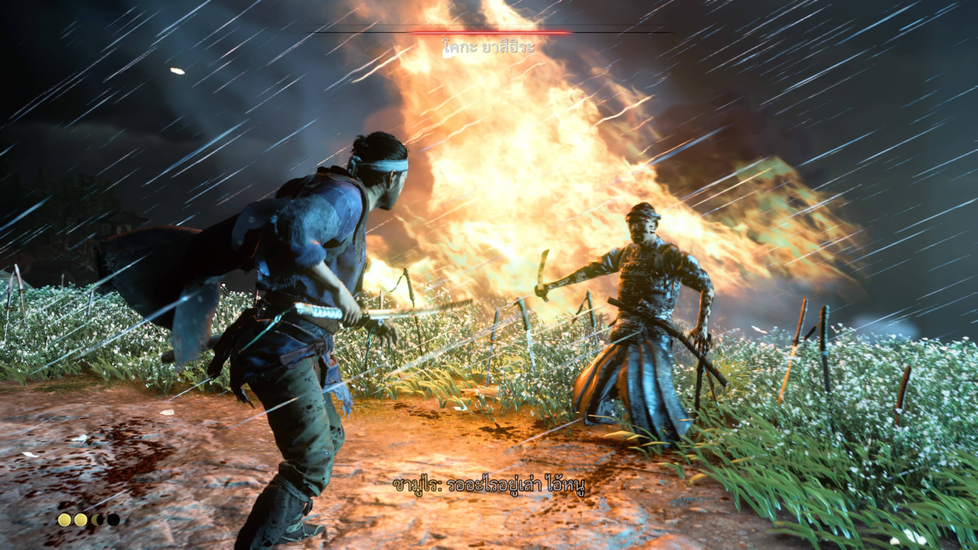 ช่วงปลายศตวรรษที่ 13 อาณาจักรมองโกลได้ข้ามผืนน้ำไปรุกรานญี่ปุ่น แนวป้องกันเพียงแห่งเดียวของดินแดนอาทิตย์อุทัยคือเกาะที่มีนามว่า “สึชิมะ” แต่ด้วยแสนยานุภาพของทัพมองโกล สึชิมะจึงถูกเผาทำลายในการโจมตีเพียงระลอกเดียว “จิน ซาไค” ซามูไรหนุ่มผู้รอดชีวิต ผู้ที่ต้องการกอบกู้อบ้านเกิดเมืองนอนของเขา ไม่ว่าจะยากลำบากเพียงใด และไม่ว่าจะต้องเดินทางไปในเส้นทางคนละสายกับเกียรติยศของซามูไรก็ตาม เพื่อปลดปล่อยสึชิมะสู่อิสรภาพแล้ว เขาพึงทำทุกอย่าง สายเลือดตะวันตก จิตวิญญาณตะวันออก Ghost of Tsushima เป็นเกมแนว action adventure มุมมอง 3rd person ที่ผสานการเล่นแบบลอบเร้น (stealth) และมีเรทความรุนแรงอยู่ที่ MATURE 17+ เรื่องราวของเกมจะอยู่บนแผนที่แบบโลกเปิด open-world บนเกาะสึชิมะ ที่อิงมาจากประวัติศาสตร์จริงๆ (แน่นอนว่ามีแต่งเติมเพื่อความบันเทิง) ซึ่งอาจใช้เกมในซีรีส์ “Assassin’s Creed” เป็นการอธิบายถึงรูปแบบคร่าวๆ ของเกมนี้ให้กับซามูไรฝึกหัดทั้งหลายเข้าใจได้อย่างไม่ยากนัก เกมนี้ถูกพัฒนาโดย Sucker Punch Productions (Infamous Series) สตูดิโอเกมสัญชาติอเมริกันที่อยู่ภายใต้ Sony Interactive Entertainment (SIE) จึงทำให้ Ghost of Tsushima เป็นเกม Only On PlayStation (exclusives) ที่ลงให้กับเครื่อง PlayStation 4 เท่านั้น (ยังไม่ยืนยันกับ PlayStation 5 แต่คาดว่าจะอัปเกรดกันให้เล่นได้ต่อ) “ใช่แล้ว นี่คือเกมสัญชาติอเมริกันแท้ ที่มีความญี่ปุ่นอยู่ในทุกลมหายใจ!” และข่าวดีสำหรับเกมเมอร์ชาวไทยก็คือ Ghost of Tsushima เป็นเกมที่รองรับคำบรรยายภาษาไทยอย่างเต็มรูปแบบ! ซึ่งต้องขอบคุณพวกเราชาวเกมเมอร์ที่อุดหนุนสินค้าลิขสิทธิ์กันมากขึ้นจนผู้จัดจำหน่ายเล็งเห็นความสำคัญของตลาดบ้านเรา ความงดงามแห่งเกาะสึชิมะ จริงๆ แล้วเกมนี้เปิดตัวมาตั้งแต่ปี 2017 และมีระยะเวลาในการพัฒนาล่วงเลยมาจนถึงการจำหน่ายก็เป็นท้ายของยุค PlayStation 4 ทำให้ Ghost of Tsushima สามารถรีดประสิทธิภาพทั้งหมดของเครื่องคอนโซลตัวนี้มาสร้างเกาะสึชิมะในยุคปลายศตวรรษที่ 13 ได้อย่างวิจิตรบรรจง กราฟิกของเกมถือว่าสวยงามอยู่ในอันดับต้นๆ ของเกมใน PlayStation 4 เลยทีเดียว โดยเฉพาะอย่างยิ่งถ้าได้เชื่อมต่อกับจอภาพที่รองรับระบบ HDR (High Dynamic Range) ก็จะยิ่งทำให้ตัวเกมปลดปล่อยแสงและเงาที่ถูกรังสรรค์อย่างประณีตสมจริงออกมา (และแน่นอนว่ามี Photo Mode!) แต่ยังมีเรื่องน่าเสียดายตรงที่ตัวเกมสามารถรันได้เพียง 30FPS เท่านั้น (แม้บนเครื่อง PlayStation 4 Pro ก็ตาม) ซึ่งถ้าตัวเกมสามารถถูกรันออกมามีค่า Frame Rate ที่สูงกว่านี้ได้ อาจส่งเสริมในเรื่องท่วงท่าการฟันดาบของจิน ซาไค ที่ถูกออกแบบมาเป็นอย่างดีให้มีความงดงามมากยิ่งขึ้น ภาพทั้งหมดในบทความรีวิวถูกบันทึกมาจากเครื่อง PlayStation 4 Pro อา