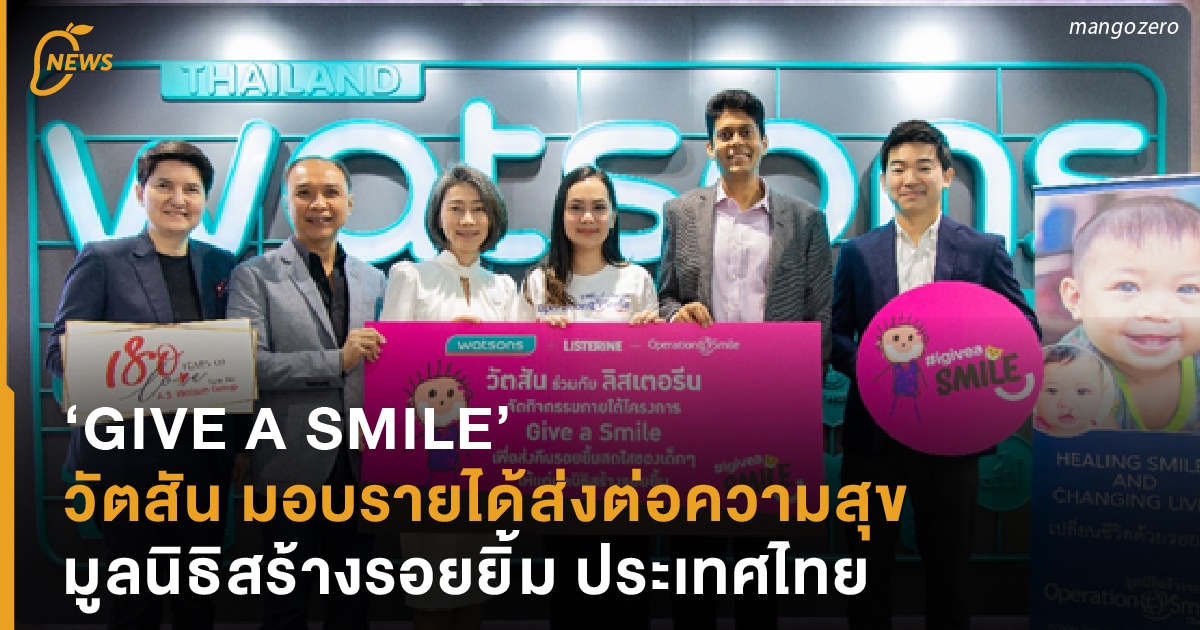 วัตสัน ร่วมกับ ผลิตภัณฑ์ ลิสเตอรีน มอบเงินรายได้จากการจำหน่ายสินค้าสุดพิเศษภายใต้แคมเปญ “GIVE A SMILE” ให้แก่ มูลนิธิสร้างรอยยิ้ม ประเทศไทย (Operation Smile Thailand) ซึ่งเป็นองค์กรการกุศลทางการแพทย์ที่ไม่แสวงหาผลกำไรที่ช่วยเหลือผู้ที่มีภาวะปากแหว่งเพดานโหว่และความผิดปกติอื่นๆบนใบหน้า โดยวัตสันมุ่งหวังที่จะเห็นเด็ก ๆ เหล่านี้ ได้กลับมีชีวิตที่ดีขึ้น มีรอยยิ้มที่สดใสอีกครั้ง และตอกย้ำการดำเนินงานในด้านความรับผิดชอบต่อสังคมของวัตสัน ที่ได้ดำเนินการมาอย่างต่อเนื่องเป็นเวลาหลายปี พร้อมมุ่งมั่นทำความดีเพื่อสังคมต่อไป