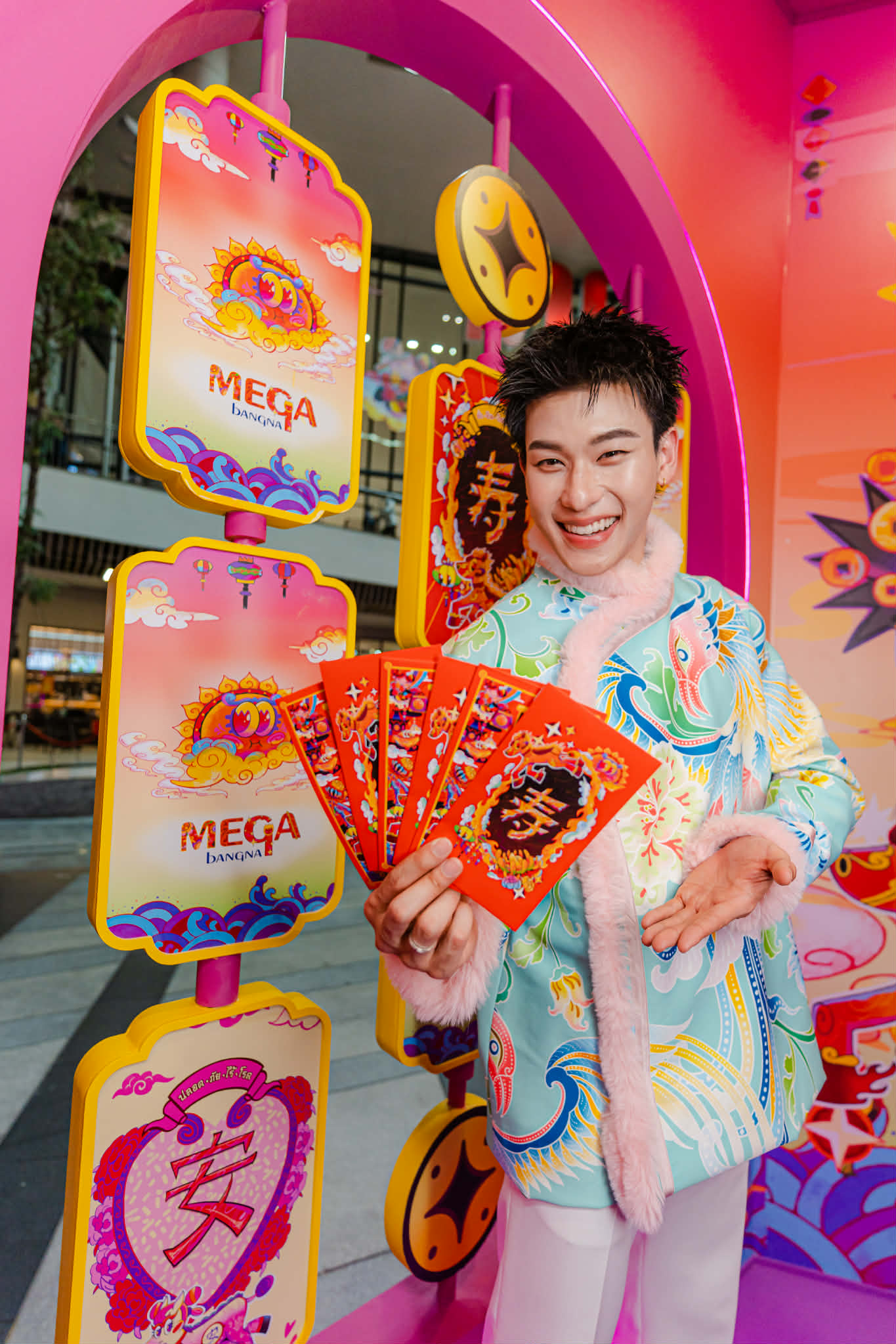 ซึ่งภายในงานก็เต็มไปด้วยกิจกรรมน่าสนใจมากมาย เริ่มตั้งแต่แลนด์มาร์กศิลปะร่วมสมัย “MEGA LAND OF FUN AND FORTUNE” บริเวณเมน เอนทรานซ์ พื้นที่ระเบิดความอาร์ตจากฝีมือของ “ตุ๊–ณัชพล ตุ๊เสงี่ยม” พบกับม้านำโชคทั้ง 8 ตัวที่จะมาเสริมพลังมงคลต้อนรับปีม้าไฟ พร้อมแสงสีสดใสแบบจัดเต็ม