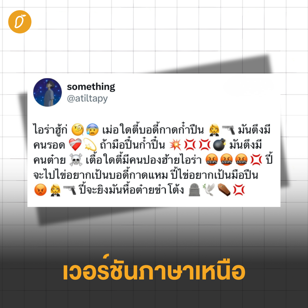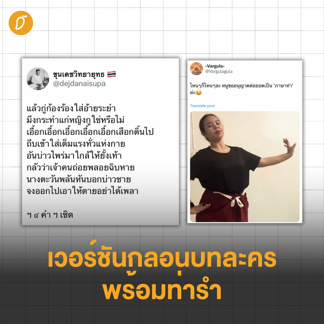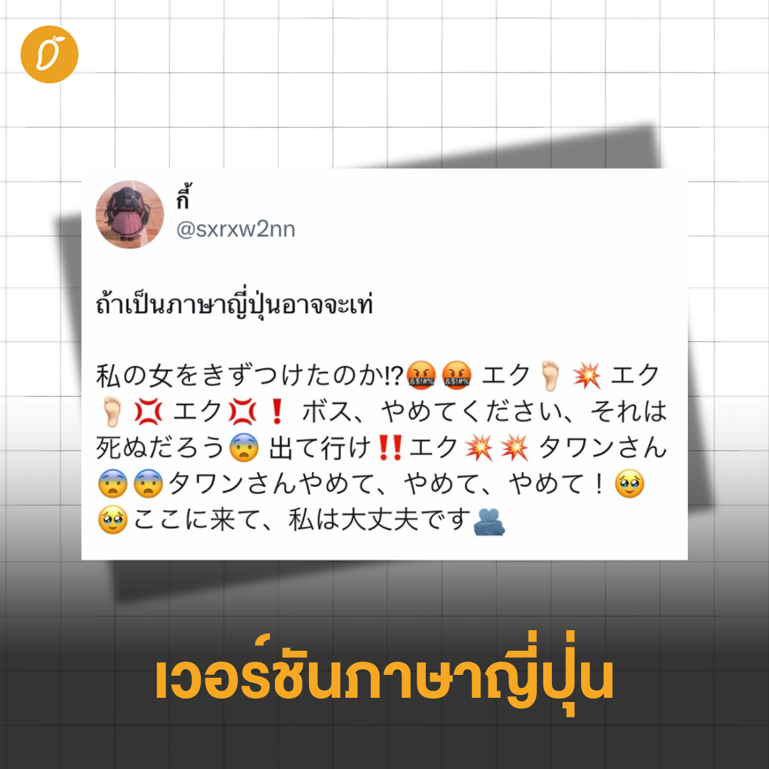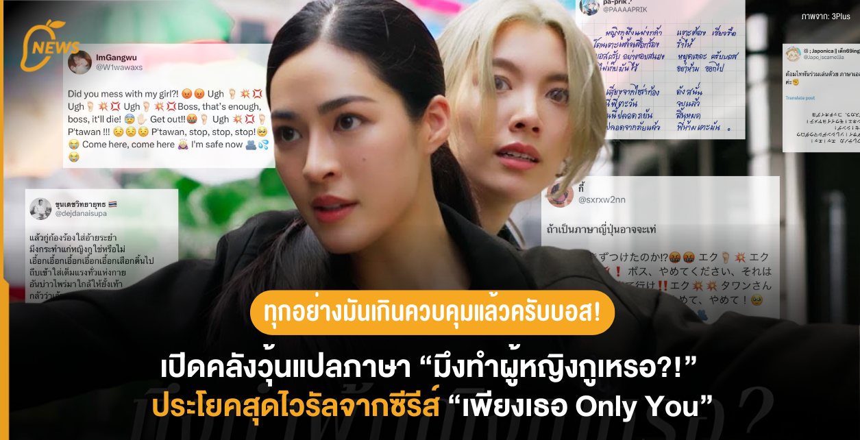 ผู้ใช้แอปพลิเคชัน X ร่วมมือร่วมใจแปลงบทละคร “มึงทำผู้หญิงกูเหรอ?!” จากซีรีส์ “เพียงเธอ Only You” สู่เวอร์ชันสารพัดภาษา! จนกลายเป็นไวรัลความลื่นไหลทางภาษาสุดพีคในโลกอินเทอร์เน็ต นาทีนี้ไม่ว่าจะหันไปทางไหน หลายๆ คนก็น่าจะเห็นหลากหลายประโยคฮิตจากซีรีส์ “เพียงเธอ Only You” ซึ่งนำแสดงโดยสองสาวดูโอ้มาแรงแห่งยุคอย่าง “หลิง-ออม” ถูกหยิบมาพูดถึงหรือทำเป็นคอนเทนต์มากมาย ไม่ว่าจะเป็นประโยค “ไอร่ารู้ไหม? เมื่อไรที่บอดี้การ์ดจับปืน เมื่อนั้นต้องมีคนรอด…” (นั่นแน่! รู้นะว่าต่อบทกันได้) หรือจะเป็นประโยค “When I Look at you” ที่เมื่อได้ยินแล้วก็ยากจะห้ามใจไม่ให้ร้องต่อเป็นทำนองว่า “มันฟ้องได้ด้วยตา~” และอีกหนึ่งประโยคที่ขาดไม่ได้ คงต้องขอยกให้กับบท “มึงทำผู้หญิงกูเหรอ?!” ที่มาจากฉากในตอนที่ 10 เมื่อนักร้องสาวอย่าง “ไอร่า” ถูกกลุ่มผู้ร้ายมาลอบโจมตี ทำให้บอดีการ์ดสุดเท่อย่าง “พี่ตะวัน” ต้องออกโรงปกป้อง จับผู้ร้ายมาซ้อมให้อยู่หมัดพร้อมตะโกนด้วยความเดือดดาลว่า “มึงทำผู้หญิงกูเหรอ?!” ซ้ำๆ และจุดเริ่มต้นที่ทำให้บทพูดนี้กลายมาเป็นไวรัลระดับตำนาน ก็มาจากการที่ผู้ใช้บัญชี X รายหนึ่ง (@98sBlueK) ได้ทวีตข้อความบอกเล่าว่าเปิดซับไตเติลอังกฤษฉากนี้แล้วเขิน! พร้อมแนบหลักฐานประกอบเป็นรูปซับบรรยายภาษาอังกฤษที่ขึ้นว่า “you laid a hand on my woman!?” อ่านแล้วก็ชวนให้รู้สึกใจเต้นแรง หน้าร้อนผ่าวขึ้นมาอย่างไรอย่างนั้น งานนี้ชาวเน็ตทั้งหลายจึงปิ๊งไอเดีย! ขอสวมวิญญาณวุ้นแปลภาษาโดยการจับบทพูดของ “พี่ตะวัน” มาดัดแปลงเป็นภาษาอื่นๆ บ้าง เริ่มจากภาษาทั่วๆ ไปอย่างภาษาถิ่น ภาษาญี่ปุ่น ภาษาเกาหลี แต่เห็นทีงานนี้จะไม่ท้าทายพอ บางคนจึงขอลองแปลเป็นภาษาที่ยากกว่านั้น จนกลายเป็นไวรัลที่กวาดยอดการมองเห็นไปกว่า 10 ล้าน! รับประกันว่าบางภาษาก็คาดไม่ถึงว่าจะได้เห็น ถึงขั้นต้องหลุดปากออกมาเลยว่า “ทุกอย่างมันเกินควบคุมแล้ว!” พูดขนาดนี้หลายคนคงอยากรู้แล้วว่าความลื่นปรื๊ดทางภาษามันหน้าตาเป็นอย่างไร วันนี้แมงโก้จึงขอนำเสนอประโยค “มึงทำผู้หญิงกูเหรอ?” ในเวอร์ชัน 8 ภาษาสุดล้ำ หากพร้อมแล้วขอชวนทุกคนหยิบวุ้นแปลภาษามาเคี้ยว แล้วมาสวมบทพี่ตะวันด้วยกันได้เลย~ เวอร์ชันภาษาอังกฤษ ที่มา: @W1wawaxs เวอร์ชันภาษาญี่ปุ่น ที่มา: @sxrxw2nn เวอร์ชันภาษาเหนือ ที่มา: @atiltapy เวอร์ชันโคลงสี่สุภาพ ที่มา: @PAAAAPRIK เวอร์ชันกลอนบทละครพร้อมท่ารำ ที่มา: @dejdanaisupa และ @Vargulagula เวอร์ชันภาษา BINARY CODE ที่มา: @M0CHII_TTC เวอร์ชันภาษาเอลเดีย (จาก Attack on Titan) ที่มา: @Japo_iscamellia เวอร์ชันภาษาชนิทเซล (จาก Chowder & Friends) บอกเลยว่างานนี้นอกจากจะสร้างรอยยิ้มและเสี