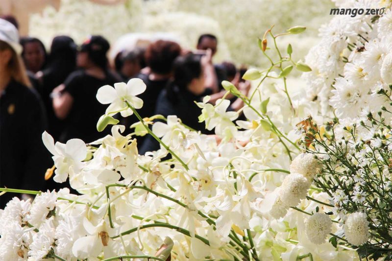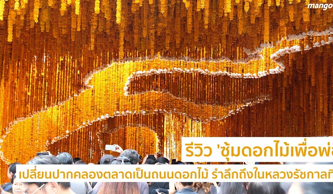 มูลนิธิมิราเคิล ออฟไลฟ์ ร่วมกับ กรุงเทพมหานคร ประชาชนชุมชนปากคลองตลาด และ สวนดอกไม้ต่างๆ ร่วมแสดงพลังและความร่วมมือทุกภาคส่วนด้วยการเปลี่ยนถนนจักรเพชร บริเวณปากคลองตลาด ให้กลายเป็นถนนสายดอกไม้ เพื่อเป็นการน้อมส่งเสด็จในหลวงรัชกาลที่ 9 สู่สวรรคาลัย น้อมรำลึกถึงพระมหากรุณาธิคุณ และร่วมถวายความอาลัยต่อพระองค์ท่าน — For English please scroll down — สำหรับ ‘ซุ้มดอกไม้เพื่อพ่อ’ นั้นเป็นการนำดอกไม้จำนวนมหาศาลมาจัดแสดงเป็น 6 ซุ้มแล้วร้อยเรียงเรื่องราวที่เกี่ยวข้องกับพระบาทสมเด็จพระปรมินทรมหาภูมิพลอดุลยเดช บรมนาถบพิตร ออกมาผ่านซุ้มดอกไม้ทั้ง 6 ซุ้มเปิดให้ประชาชนเข้าชมฟรีจนกว่าจะถึง 27 ตุลาคม ซึ่งซุ้มดอกไม้แบ่งออกเป็น ซุ้มที่ 1 คนไทย (Thais) ซุ้มที่ 2 สายฝน (The Rain) ซุ้มที่ 3 รอยเท้าพ่อ (The Imprint) ซุ้มที่ 4 บ้าน (Home) ซุ้มที่ 5 ๙ (King Rama IX) ซุ้มที่ 6 มณฑารพ (Montarop) ซุ้มที่ 1 คนไทย (Thais) ซุ้มแรกสุดซึ่งถือเป็นการต้อนรับประชาชนคนไทยทุกคน ด้านในจะมีการตกแต่งด้วยดอกไม้ตลอดสองข้างทาง แต่ไฮไลท์คือบริเวณด้านบนนั้นมีการนำดอกไม้มาประดับร่วมกับผืนผ้าหลากสีที่ทอดไปเป็นแนวยาวขนานกับพื้นถนน ก่อนที่ดอกไม้ทั้งหมดจะเปลี่ยนสีเป็นสีขาวสะอาดแล้วบรรจบออกมาเป็นธงชาติไทย ความยาวของอุโมงค์ดอกไม้นี้อยู่ที่ 89 เมตรตามพระชนมพรรษาของในหลวงรัชกาลที่ 9 เรื่องราวที่แฝงอยู่ในซุ้มดอกไม้ที่ 1 คือสื่อว่าผืนผ้าที่เต็มไปด้วยดอกไม้หลายสีที่ปรากฎอยู่บนซุ้มถอดยาวเป็นริ้วหลากสีสันนั้น คือลมพายุหรืออุปสรรคที่คนไทยต้องเจอ แต่ไม่ว่าจะรุนแรงแค่ไหนก็ไม่สามารถดับเปลวเทียนแห่งศรัทธาของคนไทยลงได้ เพราะมีพระองค์ท่านเป็นศูนย์รวมจิตใจของคนไทยทั้งชาติ ประเทศไทยจึงดำรงอยู่ได้อย่างสงบสุข ซุ้มที่ 2 สายฝน (The Rain) ซุ้มดอกไม้ที่ได้แรงบันดาลใจมาจากภาพที่คนไทยคุ้นเคยกันอย่างดีคือภาพที่ในหลวงรัชกาลที่ 9 ทรงโน้มตัวอย่างไม่ถือพระองค์ลงไปรับดอกบัวสายที่เหี่ยวเฉาจากมือของยายตุ้ม จันทนิตย์ ที่เฝ้าอดทนรอรับเสด็จพระองค์ ที่เสด็จพระราชดำเนินเยี่ยมพสกนิกร จังหวัดนครพนม เมื่อปี พ.ศ.2498 ซึ่งน้ำพระทัยของพระองค์นั้นก็เปรียบเสมือนดั่งสายฝนที่สร้างความชุ่มชื่นในหัวใจคนไทย ส่วนดอกบัวที่ถูกจัดเรียงลดหลั่นกันไปทั่วซุ้มนั้นหมายถึงการถวายสักการะของคนไทยต่อในหลวงด้วยดอกบัว ส่วนลำดับที่ลดหลั่นกันของดอกบัวนั้นเป็นปริศนาธรรมที่บ่งบอกถึงการเป็นบัวเหนือน้ำของคนไทยจากคำสอนของพระองค์ท่านที่แฝงอยู่ในทุกสิ่งที่ในหลวง ทรงทำเป็นแบบอย่าง ซุ้มที่ 3 รอยเท้าพ่อ (The Imprint) ซุ้มที่ 3 นั้นพูดถึงพระราชกรณียกิจขอ