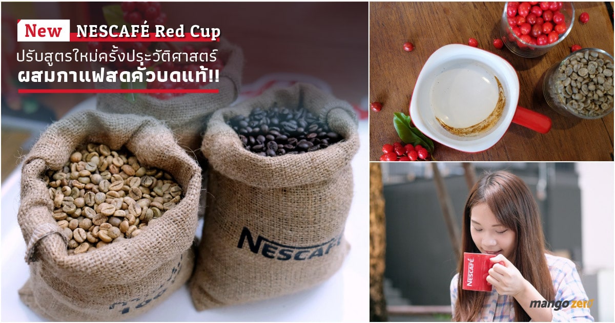 NESCAFÉ Red Cup แบรนด์กาแฟสำเร็จรูปที่อยู่คู่คนไทยมานานแสนนาน วันนี้เค้าได้ออกสูตรใหม่มา ซึ่งเรียกได้ว่าพลิกประวัติศาสตร์ของกาแฟชงสำเร็จรูปอย่างแท้จริง เพราะเนสกาแฟ เรดคัพ ใหม่ นี้ ผสม “กาแฟสดคั่วบดละเอียด” ลงไปด้วย!! ใช่แล้วครับ… ต่อไปนี้เราจะชงกาแฟดื่มที่บ้าน แต่ได้ประสบการณ์กาแฟสดแท้ 100% เลยทีเดียว กว่าจะออกมาเป็น เนสกาแฟ เรดคัพ สูตรใหม่นี้ ทางเนสกาแฟได้ใช้เวลาพัฒนาสูตรกว่า 3 ปี ลงทุนกับเทคโนโลยีสุดล้ำจากสหรัฐอเมริกา และสวิสเซอร์แลนด์ และได้ทดลองสูตรที่เป็น Prototype ในแล็บกว่า 100 สูตร ผ่านการทดลองดื่มจริงจากผู้บริโภคมากกว่า 1,000 คน จนในที่สุด ก็สามารถนำ “กาแฟสด” ลงไปใส่ในเนสกาแฟ เรดคัพ สูตรใหม่ได้สำเร็จ! สูตรใหม่นี้ จึงหอมขึ้น นุ่มขึ้น และมีกาแฟสดเป็นหลักฐานที่ก้นแก้วเมื่อดื่มหมด ทำให้ต่อไปนี้ เราจะสามารถชงกาแฟสำเร็จรูปที่มีคุณภาพแบบกาแฟสดด้วยน้ำร้อน อื้อหือ!! และเพื่อพิสูจน์ ให้รู้กันว่า จะดีงามอย่างที่ว่าจริงมั้ย ทางเนสกาแฟจึงได้เชิญเรามาร่วมในงาน NESCAFÉ Red Cup Coffee Tasting แท่นแท้นนนนน… หนุ่มหล่อท่านนี้ชื่อพี่โค้กครับ พี่โค้กเป็นผู้จัดการฝ่ายสนับสนุนการผลิตของเนสกาแฟ ผู้เชี่ยวชาญในเรื่องกาแฟที่จะมาแนะนำและให้ความรู้กับพวกเรา เอาล่ะครับ มาทำความรู้จัก และร่วมพิสูจน์คุณภาพของเนสกาแฟ เรดคัพ ไปพร้อมๆ กันนะครับ ภาพจำเมล็ดกาแฟของหลายๆ คนน่าจะเป็นเมล็ดสีน้ำตาลๆ แบบที่เราเห็นในโฆษณา แต่รู้หรือไม่ เมล็ดกาแฟโดยเริ่มต้นจะเป็นสีแดงเชอร์รี่นะครับ ให้นึกถึงข้าวที่ตอนแรกเป็นข้าวเปลือกแล้วต้องนำมาสีเพื่อเอาเปลือกออกกลายเป็นข้าวสาร เมล็ดกาแฟสีแดงเชอร์รี่คือข้าวเปลือกนั่นเอง และเมื่อนำเปลือกออกเรียบร้อยจะมีหน้าตาแบบนี้ สีจะออกเขียวๆ เรียกว่ากาแฟสาร เมื่อกาแฟสารผ่านการคั่วแล้ว เมล็ดจะพอง และเปลี่ยนเป็นสีน้ำตาลเข้มแบบนี้ครับ มาว่าด้วยเรื่องกลิ่นหอมที่เป็นเอกลักษณ์ของกาแฟสดกัน เครื่องที่เห็นอยู่ในภาพด้านบนคือเครื่องบดเมล็ดกาแฟแบบหยาบๆ เราจะนำมาลองบดเมล็ดกาแฟที่อยู่ในถ้วยด้านข้าง พี่โค้กบอกว่า หลังจากบดเมล็ดแคร่กๆๆๆ ในเครื่องเสร็จแล้ว ให้เปิดฝาออกแล้วให้รีบสูดกลิ่นหลังจากเปิดฝาออกทันที กลิ่นหอมทันทีมันจะหอมในระดับดีที่สุดแว้บเดียว นั่นคือกลิ่นหอมที่เป็นจุดเด่นของกาแฟสด หลังจากเปิดฝาออกมา อื้อหืออออ!! เป็นครั้งแรกที่ผมได้กลิ่นเมล็ดกาแฟบดสดๆ มันจะมีกลิ่นหอมหวาน ชวนเคลิ้ม… ซึ่งเค้าบอกว่ากลิ่นนี้แหละ ที่จะอยู่ในกาแฟสูตรใหม่ของ Red Cup (ขอบคุณนายแบบสุดเคลิ้มจากเพจ กินกับพีท เที่ยวกับผม ด้วยคร