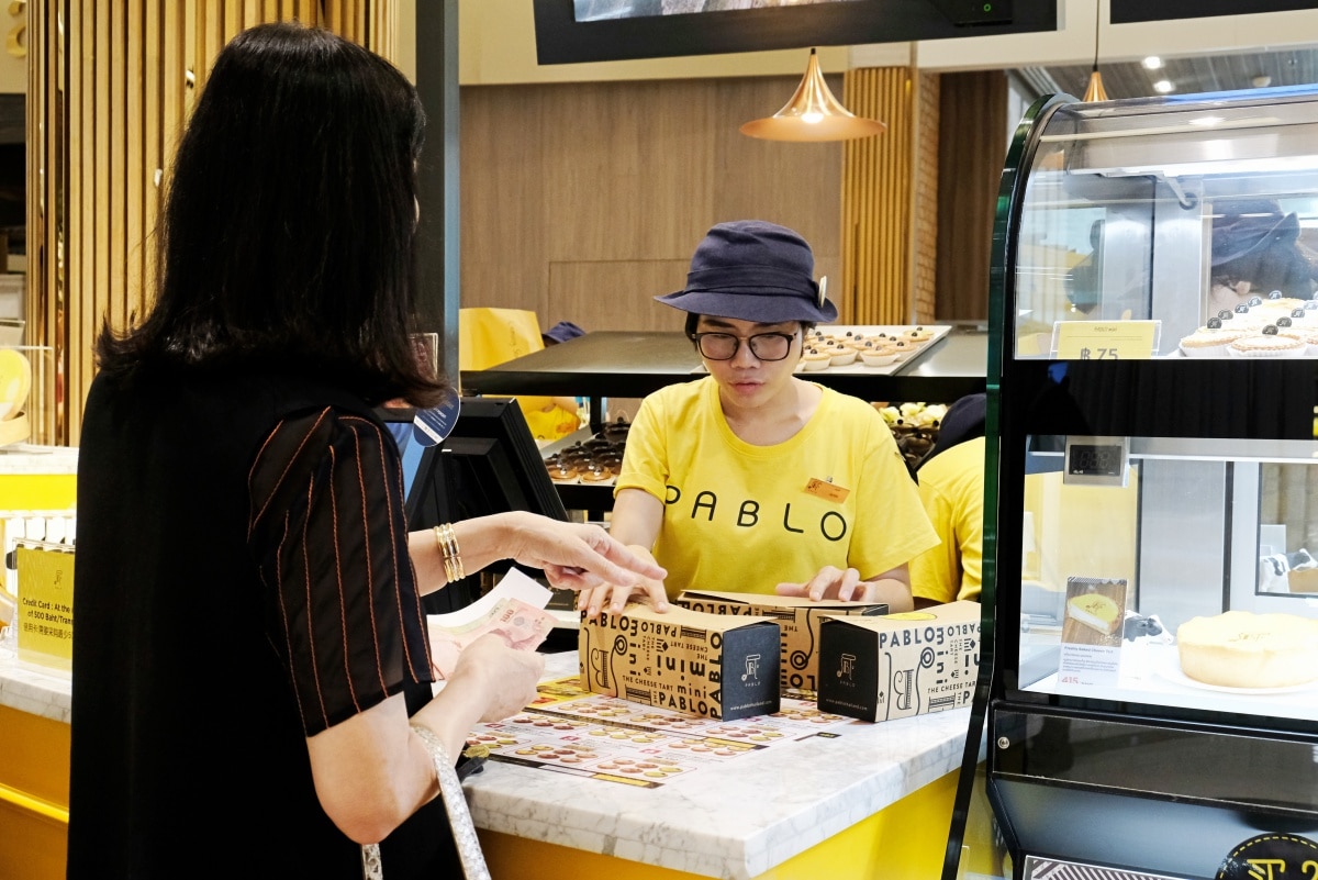 เป็นกระแสอย่างต่อเนื่องสำหรับ Pablo ที่ได้รับความนิยมตั้งแต่เปิดสาขาที่เมืองไทยเมื่อปีที่แล้ว จากนั้นค้าได้เริ่มขยายสาขาตามห้างต่างๆ จนล่าสุดได้เปิดสาขาใหม่อยู่ที่ชั้น 3 ของตึก King Power รางน้ำ สาขานี้เป็นสาขาที่ใช้ชื่อว่า Pablo mini เป็นบูธขนาดเล็กนั่นเอง จะไม่ได้มีที่สำหรับนั่งทานเหมือนกับสาขา Siam Paragon วันนี้เองทีมงาน Mango Zero ที่เป็นแฟน Pablo อยู่แล้วจึงได้มีโอกาสแวะไปเก็บภาพบรรยากาศมาให้ชมกันด้วย และที่เป็นไฮไลท์สำหรับวันนี้คือ Pablo mini รสใหม่ รสสตรอว์เบอร์รี่ที่เริ่มขายพร้อมวันเปิดตัวเฉพาะสาขาใหม่เท่านั้น ในอนาคตอาจจะมีขยายไปจำหน่ายสาขาอื่นๆ ด้วย อันนี้ต้องติดตามกันดู ทีมงานได้ไปถึงก่อนเวลาเปิดขายจริงเล็กน้อย จึงมีโอกาสได้เห็นการเตรียมร้านด้วยครับ ที่เห็นในภาพคือคนญี่ปุ่นจาก Pablo ประเทศญี่ปุ่นเดินทางมาเพื่อดูความเรียบร้อยโดยเฉพาะเลย เห็นเค้าว่าถ้ามีสาขาไหนเปิดใหม่จะต้องมาตรวจสอบแบบนี้ทุกครั้งเพื่อให้ได้มาตรฐานแบบ Pablo จากประเทศญี่ปุ่น เมื่อถึงเวลาก็มีลูกค้ามาต่อคิวแน่นขนัดเช่นเคยครับ แต่คิวก็ไม่ได้ยาวเท่าวันเปิดสาขาที่พารากอนวันแรกนะ ผมเองก็ไปเข้าแถวซื้อกับเค้าด้วย มีลูกค้าข้างหน้าประมาณ 10 คิว ก็ยืนชิวๆ ครับ ระหว่างรอเราสามารถยืนส่องพี่ๆ พนักงานเค้าจัดขนมกันได้ครับเพลินๆ พร้อมกินหอมของพาโบลที่เพิ่มความอยากทานเข้าไปอีกหลายเท่า และระหว่างนั้นเองเราจะได้ยินเพลงของร้านพาโบลเปิดคลอจนแทบจะร้องตามได้เลยทีเดียว ขนมอื่นๆ ของพาโบลก็มีจำหน่ายหลากหลายเหมือนกันทุกสาขาครับ สามารถซื้อไปเป็นของฝากกันได้ ราคาของ Pablo mini set ครับ ซื้อเป็นกล่องๆ ตามที่เค้าจัดไว้ให้ราคาจะถูกกว่า ได้หลากหลาย แล้วก็ไม่ต้องคิดมาด้วย จิ้มๆ เอาอันนี้ๆ ง่ายดี จัดมาเรียบร้อย ได้มาหลายชิ้นเลย เดี๋ยวมาชมกันครับ 🙂 มาแว้ววววววว Pablo mini รสสตรอว์เบอร์รี่ ชิ้นละ 95 บาท สีสันภายนอกออกจะเป็นสีชมพูอ่อนๆ ปนด้วยสีน้ำตาลที่ได้จากการนำขนมไปอบ กลิ่นหอมดีนะ มาว่ากันเรื่องรสชาติบ้าง Pablo แบบ mini ชิ้นพอดีคำ รสชาติหวานมันเข้มข้นทั้งจากชีสและสตรอว์เบอร์รี่ มีรสอมเปรี้ยวเล็กน้อย และหอมม๊ากกกกก เป็นความดีงามที่ผสานกันระหว่างชีสและสตรอว์เบอร์รี่ เนื้อทาร์ตด้านในนุ่มๆ เยิ้มๆ ทานได้ทั้งแบบร้อนและแบบเย็น เป็นรสชาติที่ใช้ได้เลยแหละ สำหรับใครที่ชอบแบบผลไม้รสเปรี้ยวๆ หน่อย อันนี้เหมาะ ใครที่อยากลองชิม Pablo mini รสสตรอว์เบอร์ ก็สามารถไปซื้อกันได้ที่ร้าน Pablo สาขา King Power รางน้ำ สามารถนั่ง BTS ลงสถานีอนุเสาวรีย์ชัยแล้วเดินไปที่ตึก King Power ต่อได้