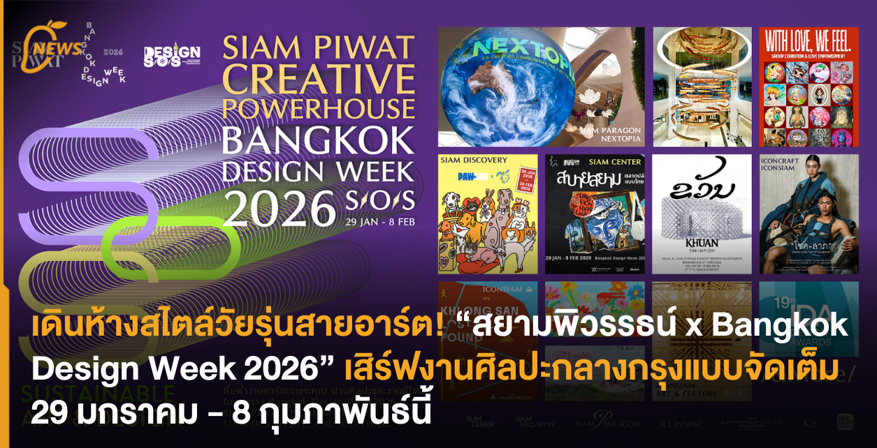 “สยามพิวรรธน์” จุดพลังความคิดสร้างสรรค์ในงาน “Bangkok Design Week 2026” ระเบิดความอาร์ตบนพื้นที่สยามพารากอน สยามเซ็นเตอร์ สยามดิสคัฟเวอรี่ และไอคอนสยาม ระหว่างวันนี้ 29 มกราคม 2569 – 8 กุมภาพันธ์ 2569 กลับมาอีกครั้งสำหรับ “Bangkok Design Week 2026” เทศกาลออกแบบครั้งใหญ่ที่รวบรวมงานศิลปะมาจัดแสดงไว้ทั่วกรุงเทพฯ โดยในปีนี้ กลุ่มสยามพิวรรธน์ นำขุมพลังความคิดสร้างสรรค์ (Creative Powerhouse) มาแสดงแบบจัดเต็ม เปิดพื้นที่ยกความอาร์ตมาเสิร์ฟกลางเมืองกรุง ภายใต้ธีม Sustainable Art & Design ทั้งสยามพารากอน สยามเซ็นเตอร์ สยามดิสคัฟเวอรี่ รวมถึงไอคอนสยาม ซึ่งในแต่ละที่ก็มีการจัดแสดงงานศิลปะ งานออกแบบที่น่าสนใจ พร้อมด้วยตลาดแห่งไอเดีย และกิจกรรมน่าสนใจกว่า 20 กิจกรรม! โดยพี่แมงโก้ได้มัดรวมไฮไลท์ที่น่าสนใจมาไว้ที่นี่แล้ว หากพร้อมแล้วไปชมกันได้เลย~ 🎨 สยามพารากอน 🔘 Trinity-go-round โดย ศรัณย์ เย็นปัญญา: หวนคืนสู่ความทรงจำในวัยเยาว์ ไปกับม้าหมุนที่ผสานความเหนือกาลเวลาเข้ากับความสนุก จัดแสดงที่ชั้น M ฝั่งนอร์ท 🔘 Between Earth & Light โดย Jean-Paul Decroix: พบกับผลงานจิตรกรรมของศิลปินระดับโลก ชวนทุกคนสำรวจความสัมพันธ์ระหว่างวัตถุ ความรู้สึก และแสงไปพร้อมๆ กัน ที่ Art Jewel ชั้น 5 🔘 Blooming Phenomenon: งานดิจิทัลอาร์ตที่เต็มไปด้วยสีสันและความสดใสของดอกไม้ บนจอ The Globe บริเวณ NEXTOPIA ชั้น 5 และ 5A 🎨 สยามเซ็นเตอร์ 🔘 สบาย สยาม – ตลาดปล่อยของ ลองดีแบบไทย: ตลาดงานอาร์ตบริเวณ Atrium 1 ชั้น G ที่เปิดโอกาสให้ศิลปินไทยได้ระบายไอเดียอย่างอิสระ 🔘 LUCKY WITH EVERYTHING: คนไทยกับความมูเป็นของคู่กัน! ชวนมาเติมความโชคดี เสริมชีวิตให้ราบรื่นกันที่ Absolute Siam Store ชั้น 1 🎨 สยามดิสคัฟเวอรี่ 🔘 KHUAN “ขวัญ” Installation Art ถ่ายทอดแนวคิดจิตวิญญาณของชาวลาวให้เป็นประสบการณ์ร่วมสมัย ชั้น 1 🔘 WIT WITH LOVE, WE FEEL: มองความรักให้ชัดเจนยิ่งขึ้น ผ่านสายตาของศิลปินไทยผู้ตีความคำว่ารักออกมาในสไตล์ของตนเอง จัดแสดงบริเวณ Creative Space ชั้น 3 🔘 MY PAWFECT BUDDIES: ทาสหมาทาสแมวเลี้ยวมาทางนี้! ชวนตกหลุมรักแก๊งขนฟูไปกับนิทรรศการและร้าน Pop-up สุดน่ารัก ที่ PAW LAB ชั้น 1 🎨 ไอคอนสยาม 🔘 give.me.museums: Flower Art Garden: ส่งต่อความสุขไปกับนิทรรศการศิลปะที่ผสานงานศิลป์เข้ากับไลฟ์สไตล์ โดยได้แรงบันดาลใจในสวนดอกไม้ จัดแสดงบริเวณเจริญนคร ฮอลล์ ชั้น M ไอคอนสยาม บอกเลยว่าสายถ่ายรูปห้ามพลาด! 🔘 BLOOM in Four Seasons – The Heart-Blossoming Immersive Experience: ดื่มด่ำความหวัง ความสุข และแรงบันดาลใจ ผ่านการชม Digital Art Design ท่ามกลางบทเพลงระดับโลกอย่าง “Vivaldi – The Four Seasons” จัดแสดงบริเวณ Attraction Hall ชั้น 6 🔘 The Loudest Silence: Deaf Art Exhibition 2026: งานนิทรรศการจากศิลปินหูหนวก และหูตึงเพื่อบอกเล่าตัวตนและอัตลักษณ์ ส่งเสริมความเข้าใจและการยอมรับในวัฒนธรรมคนหูหนวก จัดแ