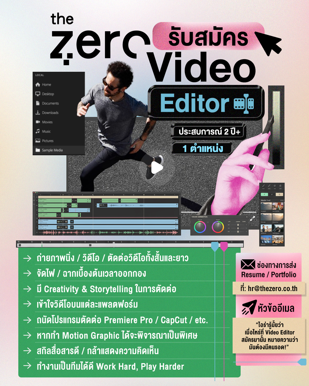 กลับมาตามคำเรียกร้องจากชุมชนคนรักงานกับการเปิดรับสมัครตำแหน่ง ‘Video Editor’ จาก The Zero Publishing ที่ครั้งนี้มาแบบ Limited Edition เพราะรับเพียง 1 ตำแหน่ง และผู้ถูกเลือกต้องมีประสบการณ์ 2 ปีขึ้นไปเท่านั้น!