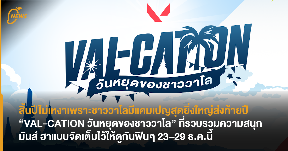 VALORANT ประเทศไทยชวนเหล่าวัยรุ่นวาโลพักสมองจากแรงค์ มาฉลอง “วันหยุดของชาววาโล” ไปด้วยกันกับแคมเปญสุดพิเศษ “VAL-CATION” ที่จัดเต็มความสนุกยาวตลอดสิ้นปี เปิดตัวด้วย “VAL-CATION Mini-Series” ที่จะพาทุกคนสัมผัสความหลากหลายของคอมมูนิตี้ VALORANT ผ่าน 4 ตอน 4 ไลฟ์สไตล์ 🏖️ VAL-CATION: ตามรอย Drift ทริปท้ายปี คอนเทนต์ท่องเที่ยวส่งท้ายปี นำโดย รัศมีแข ที่เพิ่งจะสร้างตำนานคอสเพลย์เอเจนท์คนล่าสุดอย่าง Veto แบบเหมือนเป๊ะจนแทบแยกไม่ออก พร้อมด้วย baiifernntc, f0rsakeN และ CGRS พาทุกคนออกเดินทางไปยังสถานที่ อาหาร และกิจกรรมที่ได้แรงบันดาลใจในการสร้างแผนที่ Drift แผนที่เดียวของ VALORANT ที่ได้แรงบันดาลใจจากประเทศไทยโดยตรง พบความสนุกปนวุ่นวายและความเป็นไทยในแบบฉบับวาโลกันแน่นอน RUSH MEAL: อาหารจานด่วนต้อนรับปีใหม่ ต่อด้วย เชฟป้อม – ม.ล. ขวัญทิพย์ เทวกุล ที่สร้างกระแสไวรัลแบบถล่มทลายกับการชวนคอสเพลย์เยอร์ Waylay อย่าง Kes Torao ไปเข้าครัวสร้างสรรค์เมนูข้าวเหนียวมะม่วงฉลองวันเกิดครบรอบ 5 ปีของ VALORANT เมื่อช่วงกลางปีที่ผ่านมา มาช่วงสิ้นปีนี้เลยถือโอกาสชวนเหล่าเกมเมอร์ชื่อดังอย่าง Ezqelusia, JJAZ, MintAuka และ Kes Torao เข้าครัวทำเมนูกุ้งแม่น้ำทอดซอสพิเศษสุดพรีเมียม มาลุ้นไปด้วยกันว่า งานนี้จะรอดหรือจะเละ? New Year Resolution: อยากไปเป็น Pro Player เมื่อวัยรุ่นวาโลตัวจริงอย่าง ฮาร์ท จากวง BUS because of you i shine ตั้งเป้าปีใหม่อยากไต่แรงค์เป็นโปรเพลเยอร์กับเขาบ้าง หลังโชว์ฟอร์มแรงใน Masters Bangkok 2025 จนแฟนๆ และคอมมูนิตี้วาโลทึ่งไปกับความสามารถของเขาไปตามๆ กัน งานนี้จึงถือโอกาสมาขอคำแนะนำจากสองตัวตึงของวงการ JohnOlsen และ SuperBusS ว่าต้องพัฒนาอะไรอีกบ้าง ถึงจะได้เป็นโปรเพลเยอร์เท่ๆ กับเขาบ้าง มาลุ้นไปด้วยกันว่าเขาจะได้ทิปส์เด็ดๆ อะไรกลับไปฝึกซ้อมกันบ้าง Flashback Party ส่งท้ายปีวาโล ปิดท้ายด้วยตอนสุดท้ายที่รวมดาวอินฟลูเอ็นเซอร์ VALORANT จากทุกสาย มานั่งย้อนดูสถิติเกมผ่าน flashback.playvalorant.com/th-TH พร้อมกิจกรรมวาไรตี้มันๆ ส่งท้ายปี ไปด้วยกัน งานนี้มากันเพียบจริงๆ ไม่ว่าจะเป็น สาย Streamer นำโดย Boomburapa, SuperBusS, JJAZ, MintAuka, Voicezan, sam0yyee_ และ lammysnax สาย Esports อย่าง Ptrip และ Aoeyjiwa สาย Cosplay อย่าง Meowmee หลังจบ Mini-Series ทั้ง 4 ตอน ความสนุกยังไม่หมด VALORANT ประเทศไทยยังจัดกิจกรรม LiveStream Fiesta ตั้งแต่ 29 ธันวาคม 2568 – 5 มกราคม 2569 เพียงรับชมสตรีมเมอร์ที่เข้าร่วมกิจกรรมก็มีสิทธิ์ลุ้นรับของขวัญปีใหม่สุดพิเศษแบบง่ายๆ อีกด้วย ชาววาโลห้ามพลาด มาพักกาย พักใจกับ “VAL-CATION วันหยุดของชาววาโล” ก่อนไปเริ่มต้นปีใหม่ที่แสนสนุกด้วยกันนะ!