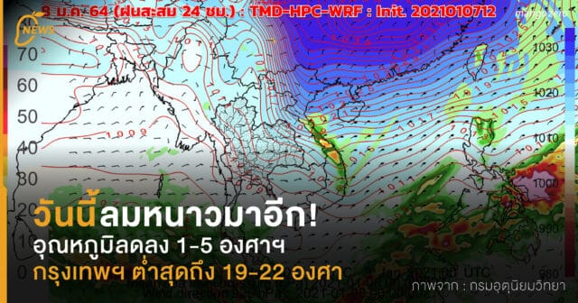 อุตุฯ เผยลมหนาวจากจีน แผ่เข้าไทยแล้ววันนี้ ‘เหนือ–อีสาน–กลาง–ตะวันออก’ อากาศหนาว–มีลมแรง อุณหภูมิลด 1-5 องศา ‘ใต้’ ฝนตก–ทะเลมีคลื่นลมแรง วันนี้ (8 ม.ค.64) กรมอุตุนิยมวิทยา พยากรณ์อากาศ 24 ชั่วโมงข้างหน้า ภาคตะวันออกเฉียงเหนือมีอากาศหนาวเย็นลงกับมีลมแรง และอุณหภูมิจะลดลง 3-5 องศาเซลเซียส มวลอากาศเย็นจากจีน ได้แผ่เข้ามาภาคอีสานของไทยแล้ว และจะเข้าปกคลุมเหนือ–กลาง–ตะวันออกในวันนี้ ทำให้มีอากาศหนาวเย็น อุณหภูมิจะลดลง 1-3 องศาเซลเซียส ส่วนมรสุมตะวันออกเฉียงเหนือกำลังปานกลาง ที่พัดปกคลุมอ่าวไทยและภาคใต้ ทำให้คลื่นลมบริเวณอ่าวไทยมีกำลังแรง อุณหภูมิต่ำสุด 22-26 องศาเซลเซียส กรุงเทพมหานครและปริมณฑล อากาศเย็นในตอนเช้ากับมีลมแรง และอุณหภูมิจะลดลง 1-3 องศาเซลเซียส อุณหภูมิต่ำสุด 19-22 องศาเซลเซียส ที่มา ไทยรัฐ