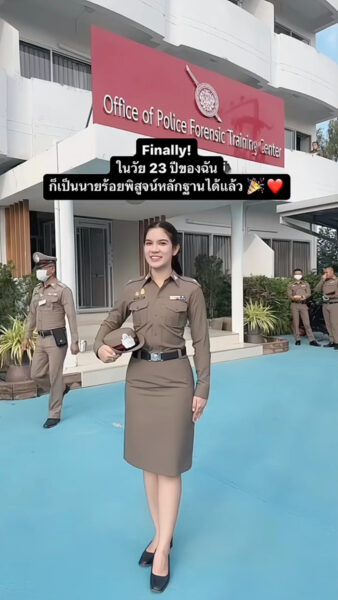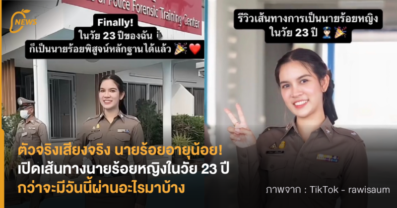 ตามติดชีวิตนายร้อยหญิง ผู้ใช้ TikTok ชื่อ rawisaum โพสต์คลิปเปิดเส้นทางสู่การเป็นนายร้อยพิสูจน์หลักฐานกับการพยายามวิ่งตามความฝันกว่า 20 ปี โดยคลิปที่กำลังเป็นที่พูดถึงในโลกอินเทอร์เน็ต เป็นคลิปประมวลภาพตั้งแต่ช่วงวัย 16-18 ปีสมัยเรียนอยู่ชั้นมัธยมศึกษาตอนปลาย สายวิทย์–คณิต เริ่มเข้าเรียนคณะวิทยาศาสตร์ สาขาวิชาเคมี ในมหาวิทยาลัยช่วงอายุ 19-22 ปี ขณะที่เรียนอยู่ก็มีการเข้าฝึกงานที่ศูนย์พิสูจน์หลักฐาน 8 และสหกิจศึกษาที่ศูนย์พิสูจน์หลักฐาน 9 ก่อนจะต่อปริญญาโทสาขานิติวิทยาศาสตร์เมื่อจบการศึกษา หลังจากเรียนปริญญาโทได้หนึ่งเทอม เธอสอบติดนายร้อย พฐ. เข้าตรวจร่างกายและเลือกตำแหน่งจากนั้นก็ได้ฝึกอบรมฝึกการตรวจพิสูจน์หลักฐานในหน้างานกระทั่งพิสูจน์ตัวเองกลายเป็นนายร้อยหญิงพิสูนจ์หลักฐานได้สำเร็จ นอกจากนี้ ในช่อง TikTok ของเธอยังมีคลิปอีกมากมายที่รวบรวมภาพและเรื่องราวระหว่างการอบรมรวมทั้งการให้ข้อมูลเกี่ยวกับการสอบนายร้อยซึ่งเป็นประโยชน์แก่คนที่มีความฝันเช่นเดียวกัน หลายต่อหลายคนที่ได้ทราบเรื่องราวของเธอก็ต่างชื่นชมในความพยายามและความสามารถที่ไร้ข้อกังขาพร้อมอวยพรให้ประสบความสำเร็จในหน้าที่การงานต่อไป รับชมคลิปได้ที่ @rawisaum